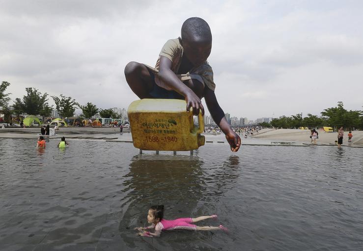 Keywords: art|public art art|publicart disaster|drought weather|heatwave outdoor Seoul, South Korea A girl swims in front of a large installation designed to raise awareness of water shortages. A heatwave warning was issued in Seoul as temperatures topped 32C Seoul, South Korea A girl swims in front of a large installation designed to raise awareness of water shortages. A heatwave warning was issued in Seoul as temperatures topped 32C |