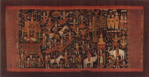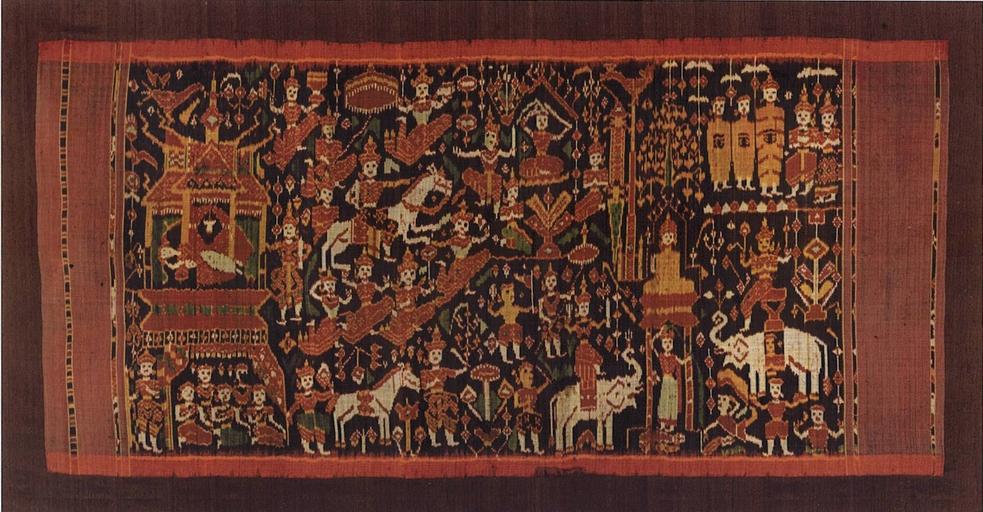 Keywords: 'Pidan' (ceremonial hanging) from Cambodia, Khmer, Honolulu Museum of Art.jpg en Episodes in the Life of Prince Siddhartha the Future Buddha The Great Departure Pidan ceremonial hanging from Cambodia Khmer 1880-1910 silk twill weave with weft ikat hol Honolulu Museum of Art accession 11115 1 Honolulu Museum of Art Honolulu Museum of Art Collection Highlights Honolulu Museum of Art 2016 ISBN 9780937426913 anonymous 1880 1910 PD-art-100 Textiles of Cambodia in the Honolulu Museum of Art Ikat Hol textiles |