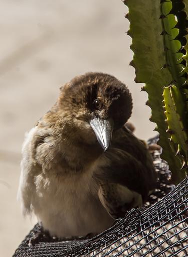Keywords: pied butcherbird butcherbird young sunbathing fluffy feathers bird black white wild queensland australia