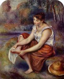 Keywords: Pierre-Auguste Renoir 077.jpg Artwork de Mädchen sich die Füße trocknend oil canvas cm 65 55 de New York de Galerie Paul Rosenberg Yorck ca 1890 Creator Pierre-Auguste Renoir http //mail wikipedia org/pipermail/wikide-l/2005-April/012195 html Other versions PD-old-auto 1919 PD-Art-YorckProject Paintings of women by Pierre-Auguste Renoir Temporary for Cat-a-lot - Female humans Eye “hand coordination Shoulders in art Human head tilting in art Undershirts Self care Sitting in art Female necklines in art Females watching in art Females in art in three-quarter views Female arms Sitting people