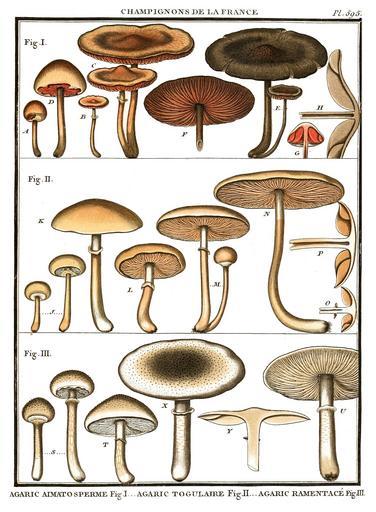| Keywords: Pierre Bulliard; Herbier de la France; Pl. 595.jpg en Pierre Bulliard Herbier de la France; Pl 595<br/> Agaricus aimatospermus Agaricus togularis Synonym of Agrocybe praecox Agaricus ramentaceus Basionym of Tricholoma ramentaceum Bull Ricken and Synonym of Tricholoma cingulatum sensu auct http //www biodiversitylibrary org/item/25360 page/35/mode/1up Biodiversity Heritage Library Creator Pierre Bulliard 1792 PD-old-100 Herbier de la France Agrocybe praecox Tricholoma cingulatum Tricholoma ramentaceum Agaricus aimatospermus Jean Baptiste François Bulliard |