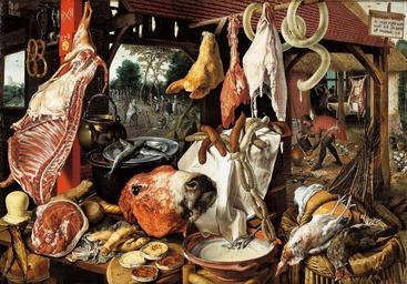 MAKE A MEME View Large Image Pieter Aertsen 005.jpg Metzgerladen mit Flucht nach Ägypten Butcher's Stall with the Flight into Egypt in 48 5 59 University Art Collections Uppsala University Sweden 2nd and 3rd versions http //www ibiblio org/wm/paint/auth/aertsen/...
