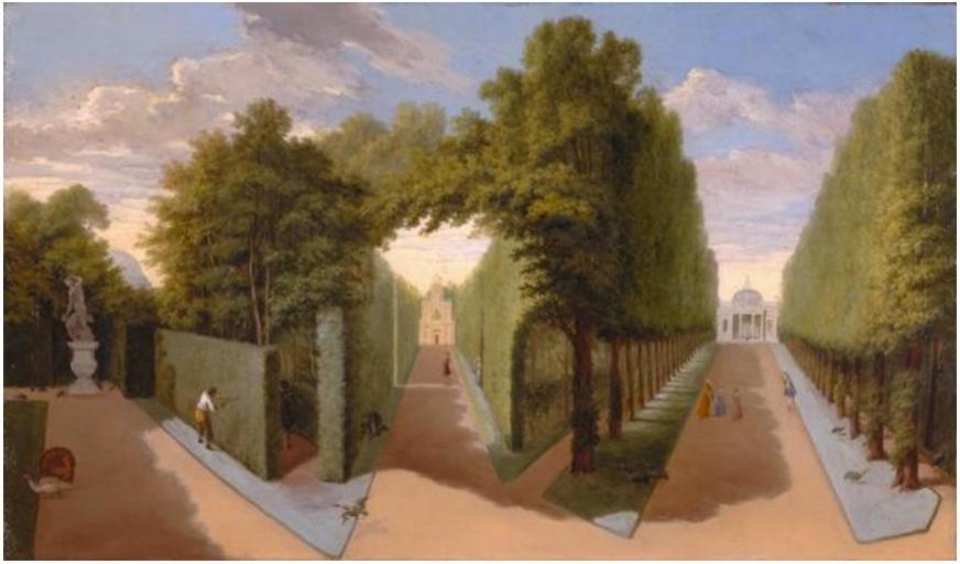 View Original:Pieter_Andreas_Rijsbrack_-_Chiswick_House_Gardens-_A_view_of_the_Bagnio_and_Grand_Allees.jpg (870x511)