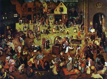 Keywords: Pieter Bruegel d. Ä. 066b.jpg Artwork de Serie der sogenannten bilderbogenartigen Gemälde Szene Streit des Karnevals mit der Fastenzeit en The Fight Between Carnival and Lent Le Combat de Carnaval et Carême pl Wojna Postu z Karnawałem Битва между ка навалом и постом Oil Wood cm 118 164 de Wien de Kunsthistorisches Museum Gemäldegalerie de Signatur Bez links unten auf einem Stein BRVEGEL V und E ligiert 1559 Inv -Nr GG_1016 Provenienz vermutlich Rudolf II ; 1748 aus der Schatzkammer in die Galerie Es gibt mehrere Kopien nachzulesen bei Klaus Ertz Pieter Brueghel der Jüngere Die Gemälde Bd 1 Lingen 1998/2000 Kat nr 183-186 S 253f Eine befindet sich im Musées Royaux des Beaux-Arts de Belgique Kat nr E 183 und gilt als eigenhändig - d h Pieter Brueghel d J - eine weitere wurde am 31 5 1989 bei Christie's in New York versteigert E 185 und gilt als Werkstattarbeit Ein weiteres Bild in Privatbesitz E 186 gilt als eigenhändig Die Kat nr E 184 ist ein seit dem 2 Weltkrieg verschollenes Bild aus Krakau Muzeum Narodowe w Krakowie 1937 wurde es von Stanislaw Ursyn-Rusiecki dem Museum gestiftet source 1559 Creator Pieter Bruegel d Ä PD-old-100 Other versions 100px The Fight Between Carnival and Lent Kunsthistorisches Museum original upload log wikitable date/time username resolution size edit summary ---- 22 01 14 September 2006 User Andreagrossmann <a href http //upload wikimedia org/wikipedia/commons/3/39/Pieter_Bruegel_the_Elder_-_The_Fight_between_Carnival_and_Lent JPG ><img alt Thumbnail for version as of 22 01 14 September 2006 src http //upload wikimedia org/wikipedia/commons/thumb/3/39/Pieter_Bruegel_the_Elder_-_The_Fight_between_Carnival_and_Lent JPG/120px-Pieter_Bruegel_the_Elder_-_The_Fight_between_Carnival_and_Lent JPG width 120 height 88 border 0 /></a></td><td>781×574 82 KB <nowiki>Pieter Bruegel the Elder - The Fight between Carnival and Lent 1559 Oil on panel <a href /w/index php title Category Pieter_Bruegel_d _ C3 84 action edit redlink 1 class new title Category Pieter Bruegel d Ä page does not exist >Category Pieter Bruegel d Ä </a></nowiki> |