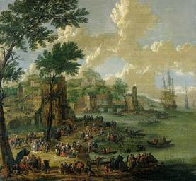 Keywords: Pieter Casteels Hafenszene.jpg artwork en Harbour Scene with Ships de Hafenszene mit Booten oil on canvas 38 5 x 41 5 cm http //www bassenge com ~ 1673-1674 Creator Pieter Casteels II PD-old-100 Pieter Casteels II Images from Galerie Bassenge Baroque paintings of harbours 1670s oil on canvas paintings 17th-century cityscape paintings 17th-century paintings location missing Paintings in unidentified countries Paintings of boats |
