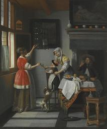 Keywords: Pieter de Hooch, Interior with a Child Feeding a Parrot.jpg en Interior with a Child Feeding a Parrot http //www sothebys com/en/auctions/ecatalogue/2012/important-old-master-paintings-n08825/lot 56 html creator Pieter de Hooch oil on canvas 1672 79 5 by 66 cm P D hooch 1672 P C Sutton Pieter de Hooch Oxford 1980 cat no 90 ; C Hofstede de Groot Beschreibendes und Kritisches Verzeichnis der Werke der Hervorragendsten Hollandischen Maler des XVII Jahrhunderts vol I Paris 1907 cat no 113 PD-old-100 Images from Sotheby's Genre paintings by Pieter de Hooch Paintings by Pieter de Hooch with fur Bird cages in art Fur fashion in 1672 Rabbit clothing Falling caps |