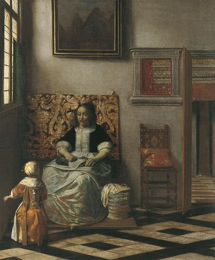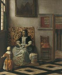 Keywords: Pieter de Hooch - Interior with a Woman sewing and a Child 1958.7.jpg Artwork creator Pieter de Hooch Title A Couple Making Music at a Table with a Serving Girl Musicerend paar en dienstmeid in een voornaam interieur c 1668 oil on canvas cm 55 45 195 1958 7 Institution Museo Thyssen-Bornemisza object history Genre works P C Sutton Pieter de Hooch Oxford 1980 cat no 82 ; C Hofstede de Groot Beschreibendes und Kritisches Verzeichnis der Werke der Hervorragendsten Hollandischen Maler des XVII Jahrhunderts vol I Paris 1907 cat no 4 http //www museothyssen org/en/thyssen/ficha_obra/317 Museo Thyssen-Bornemisza Madrid Other versions PD-old-100 Paintings by Pieter de Hooch in the Thyssen-Bornemisza Museum Baroque genre paintings Baroque paintings of women Girls in art 1660s fashion |
