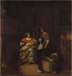 Keywords: Pieter de Hooch - Lady with baby and maid showing her a flat fish Cat501.jpg Artwork creator Pieter de Hooch Title A Lady and a Child with a Serving Maid Dienstmeid die een schol toont aan een vrouw met kind 248188 ca 1674-1676 oil canvas cm 86 2 79 7 Philadelphia 501 Philadelphia Museum of Art P C Sutton Pieter de Hooch Oxford 1980 cat no 112A object history credit line http //www philamuseum org/collections/permanent/102288 html Other versions PD-old-100 Genre paintings by Pieter de Hooch 1670s paintings Paintings in the Philadelphia Museum of Art |