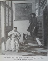 | Keywords: Pieter de Hooch - Mother and Child with a Boy descending a Stair.jpg Artwork creator Pieter de Hooch Title Mother and Child with a Boy descending a Stair ca 1668 oil canvas cm 65 55 unknown Private collection P C Sutton Pieter de Hooch Oxford 1980 cat no 81 object history credit line Own Pieter de Hooch Complete Edition by Peter C Sutton Phaidon Press Oxford 1980 ISBN 0714818283 Other versions PD-old-100 Genre paintings by Pieter de Hooch 1668 paintings | ||||