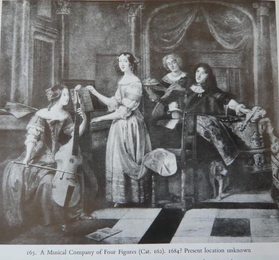 Keywords: Pieter de Hooch - A Musical Company of Four Figures.jpg Artwork creator Pieter de Hooch Title A Musical Company of Four Figures ca 1684 oil canvas cm 72 84 unknown Private collection P C Sutton Pieter de Hooch Oxford 1980 cat no 162 ; C Hofstede de Groot Beschreibendes und Kritisches Verzeichnis der Werke der Hervorragendsten Hollandischen Maler des XVII Jahrhunderts vol I Paris 1907 cat no 155 object history credit line Own Pieter de Hooch Complete Edition by Peter C Sutton Phaidon Press Oxford 1980 ISBN 0714818283 Other versions PD-old-100 Genre paintings by Pieter de Hooch 1684 paintings |