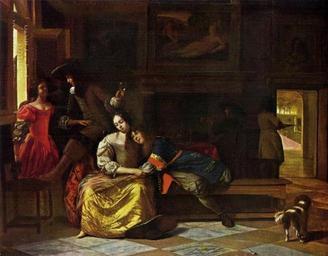 Keywords: Pieter de Hooch - A party with a couple embracing.jpg Artwork creator Pieter de Hooch Title Interior with two embracing couples Interieur met twee amoureuze koppels 248166 1673-1675 oil canvas cm 63 5 80 P C Sutton Pieter de Hooch Oxford 1980 cat no 106 ; C Hofstede de Groot Beschreibendes und Kritisches Verzeichnis der Werke der Hervorragendsten Hollandischen Maler des XVII Jahrhunderts vol I Paris 1907 cat no 5 possibly no 184 object history credit line https //rkd nl/nl/explore/images/248166 Other versions PD-old-100 Genre paintings by Pieter de Hooch 1660s paintings |