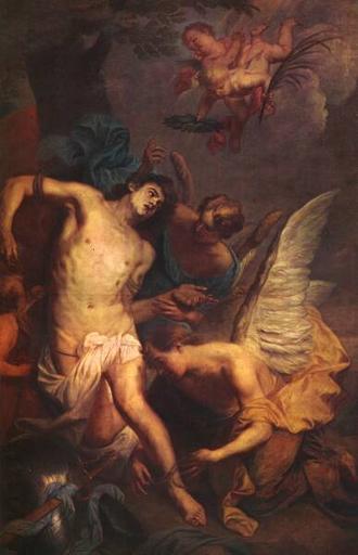 Keywords: Pieter Thijs - Saint Sebastian comforted by the angels after his martyr's death.jpg Artwork Q21680596 Creator Pieter Thijs en Saint Sebastian comforted by the angels after his martyr's death 1639-1677 http //ancientolympics arts kuleuven be/picEN/slides/P0462 jpg html Oil canvas cm 249 165 Institution Museum voor Schone Kunsten Gent Other versions PD-old-100 History and allegorical paintings by Pieter Thijs Flemish paintings in the Museum of Fine Arts Ghent Baroque paintings of Saint Sebastian 17th-century paintings of Saint Sebastian |