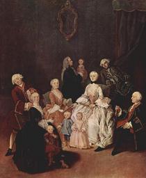 Keywords: Pietro Longhi 056.jpg Artwork Creator Pietro Longhi title Porträt einer Patrizierfamilie portrait of a Patrician Family ca 1752 Oil Canvas cm 62 50 Ca' Rezzonico Venice Genre works The Yorck Project 10 000 Meisterwerke der Malerei DVD-ROM 2002 ISBN 3936122202 Distributed by DIRECTMEDIA Publishing GmbH http //mail wikipedia org/pipermail/wikide-l/2005-April/012195 html Other versions PD-old-100 PD-Art-YorckProject Pietro Longhi Paintings in the Museo del Settecento Veneziano 1750s fashion 18th-century family portraits 1752 18th-century oil portraits 1752 18th-century portraits at full length 1752 18th-century portrait paintings in Italy 1752 Children in art Group portraits with 11 persons 1752 Paintings of families People with dogs in art Rococo portrait paintings Portraits with fans 1752 18th-century portrait paintings with dogs 1752 1750s portrait paintings |