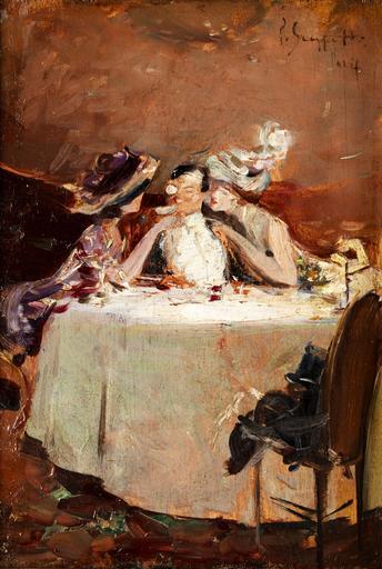 Keywords: Pietro Scoppetta Im Café.jpg Im Café oil on wood 22 x 15 cm P Scopetta/Paris signature/place upper right http //www hampel-auctions com/ Hampel Auctions by 1920 Pietro Scoppetta 1863-1920 PD-old-auto-1923 1920 Images from Hampel Auctions Cafés in art Pietro Scoppetta |