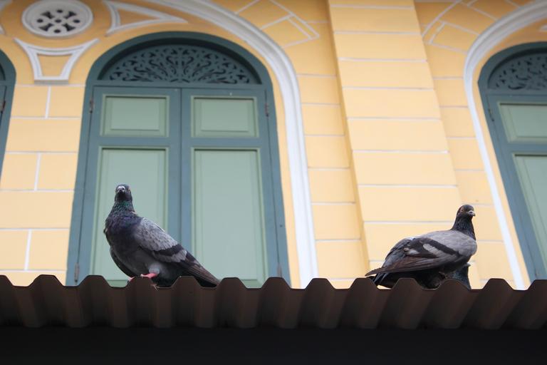 Keywords: pigeons facade window building architecture ornament bird old town historically