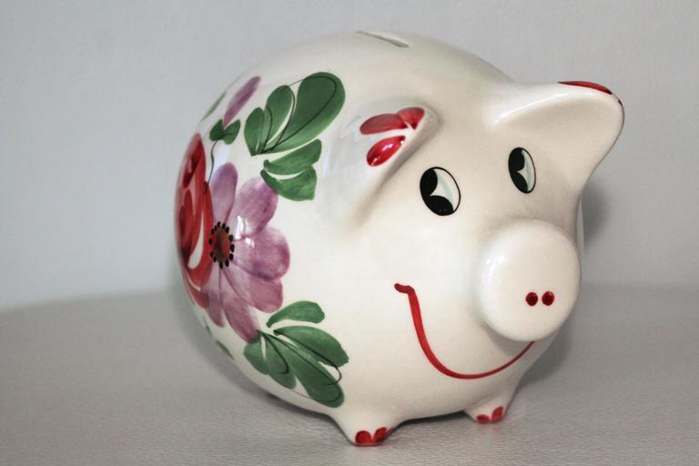 Keywords: piggy bank money save coins euro cent seem savings bank pig piglet spar slot ceramic