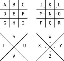 Keywords: Pigpen.png Pigpen cipher key svg Public domain transferred from en wikipedia org/wiki/Pigpen Pigpen cipher