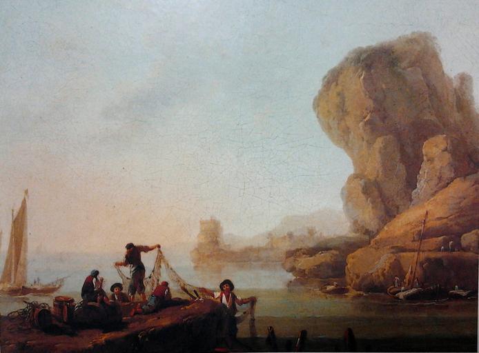 Keywords: Pillement Return from the catch.jpg Artwork Creator Jean-Baptiste Pillement 1769 oil canvas cm 24 32 Institution National Museum Warsaw accession number M Ob 402 object history ProvenanceEvent 1820 purchase Eugeniusz Sokołowski Kaunitz Collection Vienna ProvenanceEvent 1920 purchase National Museum Warsaw ProvenanceEvent 1944 transfer Nazi Germany ProvenanceEvent 1969 transfer National Museum Warsaw Desa Auction House Warsaw credit line J Pillement 1769 signature/date bottom left Iwona Danielewicz Justyna Guze 2009 Le siècle français francuskie malarstwo i rysunek XVIII wieku ze zbiorów polskich Muzeum Narodowe w Warszawie ISBN 97-88371009-61-7 cat no 115b p 398 own BurgererSF See below PD-old-100 DEFAULTSORT 1769; Return from the catch Paintings by Jean-Baptiste Pillement in the National Museum in Warsaw Fishing in art Fishing nets in art |