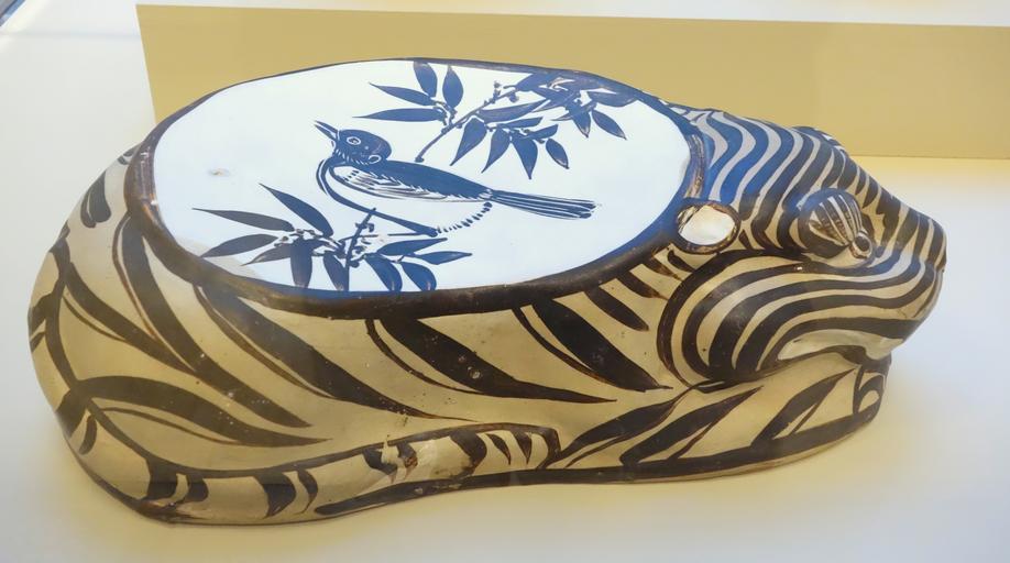 Keywords: Pillow in the shape of a tiger, China, Henan or Shaanxi province, Jin dynasty, 1206-1234 AD, ceramic, glaze, overglaze black - Asian Art Museum of San Francisco - DSC01359.JPG en Exhibit in the Asian Art Museum of San Francisco San Francisco California USA This artwork is in the public domain because the artist died more than 70 years ago Photography was permitted in the museum without restriction 2013-11-05 20 15 18 own Daderot other versions cc-zero Ceramic pillows in the Asian Art Museum of San Francisco Uploaded with UploadWizard Ceramics of the Jin Dynasty 1115-1234 |
