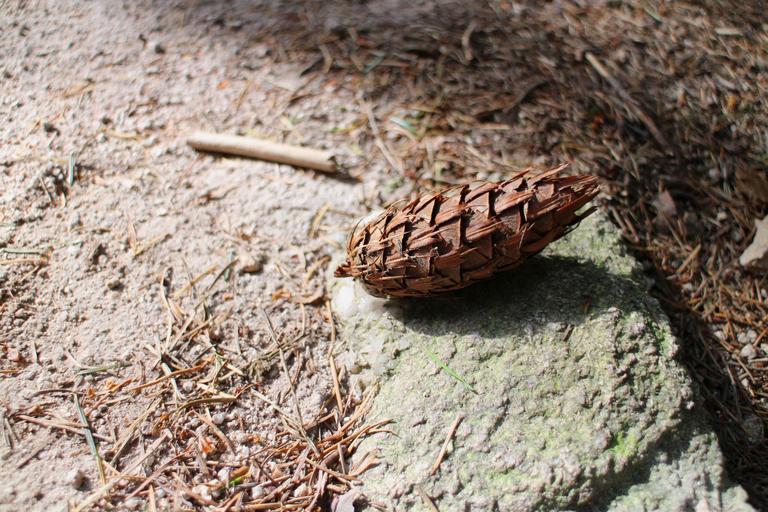 Keywords: pine cones forest forest path hiking wanderlust green plant stone earth shadow shadow play outdoor nature