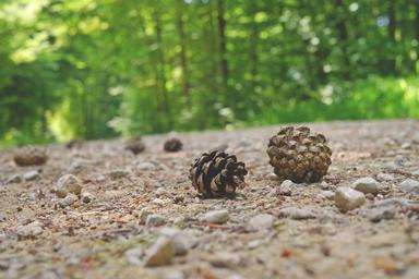 Keywords: pine cones forest path forest close tap away hiking walk recovery rest nature