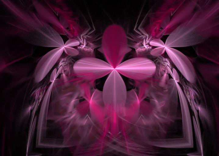 Keywords: pink floral fractals abstracts blooms blossoms patterns designs dark background black backgrounds colorful bright petals shining shines shiny glows glowing digital art artistic symmetrical symmetry decorative