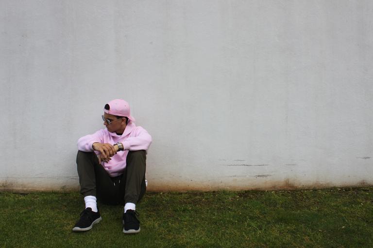 Keywords: pink guy skater summer wall sitting teens young only