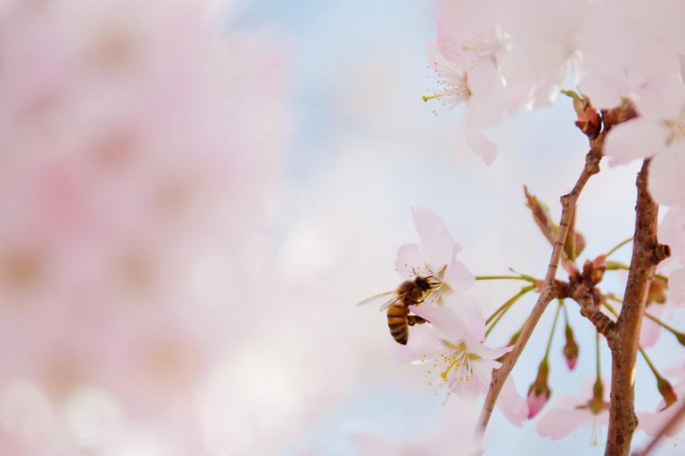Keywords: pink pollen close-up flower nectar pollination nature blossom cherry pollinating season bee honey spring insect animal petal floral pollinate