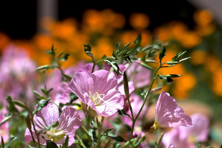 Keywords: depth of field outdoor flower plant The riot of color continues with Mexican Primrose (pink) and California Poppies (orange) The riot of color continues with Mexican Primrose (pink) and California Poppies (orange)