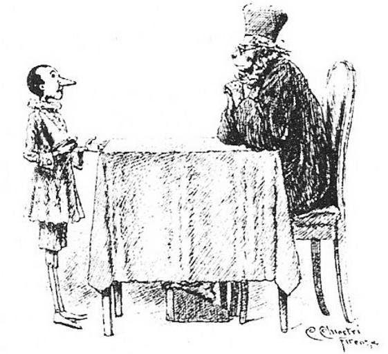 Keywords: PinocchioChiostri15.jpg it Pinocchio e il giudice Illustrazione di Carlo Chiostri 1863 - 1939 dal libro di Collodi Le avventure di Pinocchio 1901 scan of a book Collodi le avventure di Pinocchio 1901 Carlo Chiostri 1863 - 1939 1901 Carlo Chiostri Le avventure di Pinocchio PD-old |