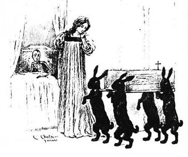 Keywords: PinocchioChiostri2.jpg it Illustrazione di Carlo Chiostri 1863 - 1939 dal libro Le avventure di Pinocchio di Collodi - 1901 Pinocchio ammalato nella casa della Fata riceve la visita di quattro conigli neri con una bara scan of a book Collodi Le avventure di Pinocchio 1901 Carlo Chiostri 1863 - 1939 1901 Carlo Chiostri Le avventure di Pinocchio PD-old |