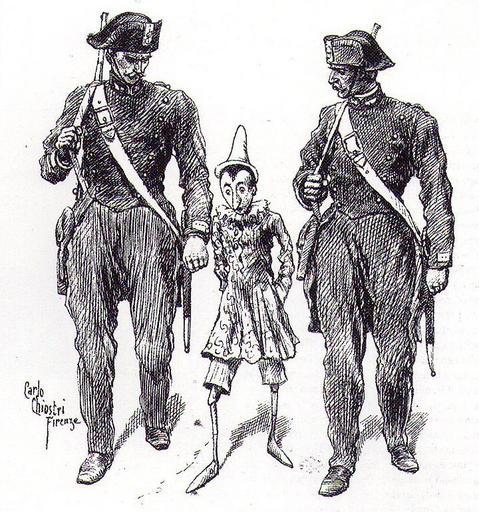 Keywords: PinocchioChiostri8.jpg it Pinocchio viene arrestato da due carabinieri Illustrazione di Carlo Chiostri 1863 - 1939 dal libro di Collodi Le avventure di Pinocchio 1901 scan of a book Colli Le avventure di Pinoicchio 1901 Carlo Chiostri 1863 - 1939 1901 Carlo Chiostri Le avventure di Pinocchio PD-old |