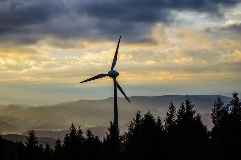 Keywords: pinwheel black forest wind turbine wind power nature rotor blades evening sky brandkopf sunset propeller wind energy rotor environment landscape