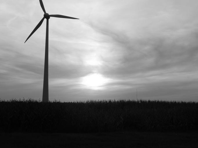 Keywords: pinwheel wind power wind energy sunset black and white turbine power generation generator