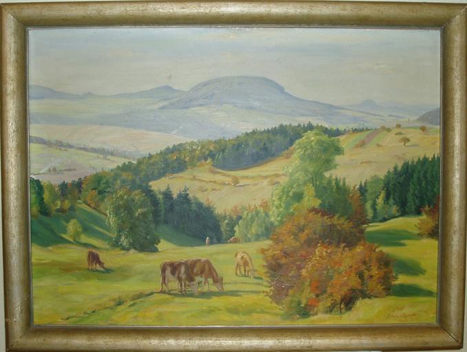 Keywords: Pippert - Rhönlandschaft mit Kühen bei Unterweid.JPG en Pippert Wilhelm - Rhön-Landscape with Cows to Unterweid Germany Oil on canvas 900 x 660 de Pippert Wilhelm - Rhönlandschaft mit Kühen bei Unterweid Öl auf Leinwand 900 x 660 vom Besitzer des Gemäldes Wilhelm Pippert 1943 50°35 958 ™N; 10°4 454 ™O Landscape paintings Deutsche Maler Pippert Wilhelm Unterweid PD-Art |