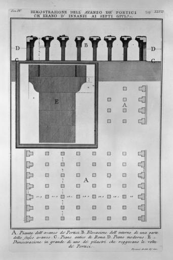 | Keywords: Piranesi-4055.jpg 4 4054 4056 XLVII DIMOSTRAZIONE DELL ™AVANZO DE ™ PORTICI CH' ERANO D'INNANZI AI SEPTI GIULJ 354X255 /409X260 mm en The hypogeum of Santa Maria in Via Lata wrongly named as Saepta Iulia by Piranesi See also Le antichità Romane-1 tav II n 104 105 Silvio Valenti I sotterranei di Santa Maria in via Lata e la ricognizione del pozzo // Archeologia Sotterranea 2011 No 5 Saepta Iulia Etchings by Giovanni Battista Piranesi | ||||