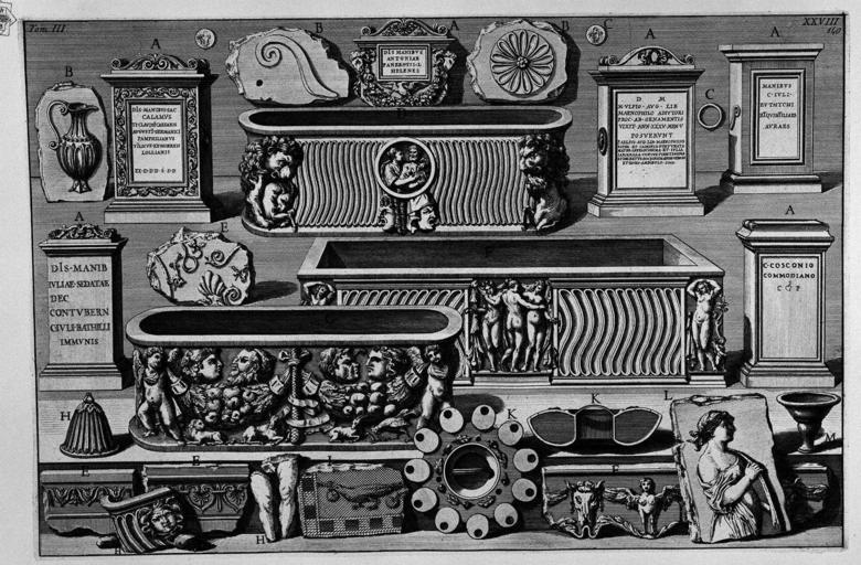 View Original:piranesi_roman_antiquities_3_plate_xxviii_stones_sarcophagi_other_objects_found_buri.jpg (1500x984)