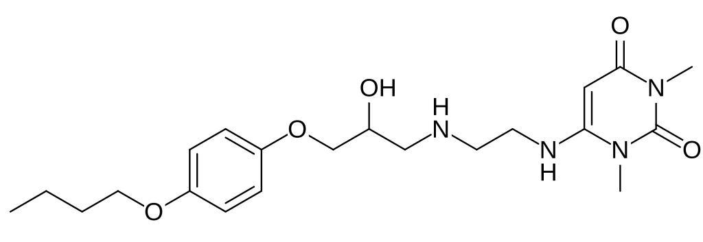 Keywords: Pirepolol.svg Chemical structure of pirepolol Own 21 30 29 March 2014 UTC Ed Edgar181 Beta blockers Phenol ethers Pyrimidinediones