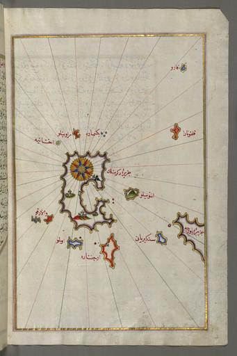 Keywords: Piri Reis - Map of Melos Island - Walters W658357B - Full Page.jpg This folio from Walters manuscript W 658 contains a map of Melos Degirmenlik island late 11th century AH/AD 17th century-early 12th century AH/AD 18th century Ottoman ink and pigments on laid European paper cm 34 24 accession number W 658 357B 79921 Ahmad Afandi date and mode of acquisition unknown see folio 4a Ali Afandi date and mode of acquisiton unknown see folio 4a Sayyid Ali Qapudan date and mode of acquisition unknown see folio 1a Sultan Mahmud Khan date and mode of acquistion unknown waqf seal and followed by a bequest statement now erased and the seal of the inspector of wakfs Mustafá Tahir see folio 4a Henry Walters Baltimore date and mode of acquisition unknown Walters Art Museum Henry Walters Acquired by Henry Walters place of origin Turkey Walters Art Museum license 2D Piri Reis Kitab-ı Bahriye Walters MS 658 Media contributed by the Walters Art Museum needs category review |