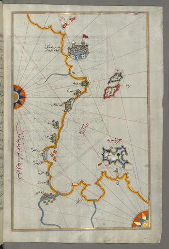 | Keywords: Piri Reis - Map of the Tunisian Coast with the Fortress of Mahdiyah and the Island of Jarbah - Walters W658283B - Full Page.jpg Piri Reis - Map of the Tunisian Coast with the Cities of Kelibia Hammamet Sousse and Monastir - Walters W658281B - Full Page jpg Piri Reis - Map of the Coast of Tripoli - Walters W658286B - Full Page jpg rtl This folio from Walters manuscript W 658 contains a map of the Tunisian coast with the fortress of Mahdiyah and the Island of Jarbah Jerba late 11th century AH/AD 17th century-early 12th century AH/AD 18th century Ottoman ink and pigments on laid European paper cm 34 24 accession number W 658 283B 79868 Ahmad Afandi date and mode of acquisition unknown see folio 4a Ali Afandi date and mode of acquisiton unknown see folio 4a Sayyid Ali Qapudan date and mode of acquisition unknown see folio 1a Sultan Mahmud Khan date and mode of acquistion unknown waqf seal and followed by a bequest statement now erased and the seal of the inspector of wakfs Mustafá Tahir see folio 4a Henry Walters Baltimore date and mode of acquisition unknown Walters Art Museum Henry Walters Acquired by Henry Walters place of origin Turkey Walters Art Museum license 2D Piri Reis Kitab-ı Bahriye Walters MS 658 283B Media contributed by the Walters Art Museum needs category review Old maps of Tunisia |