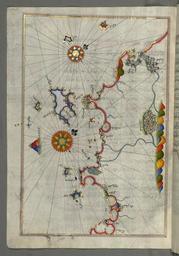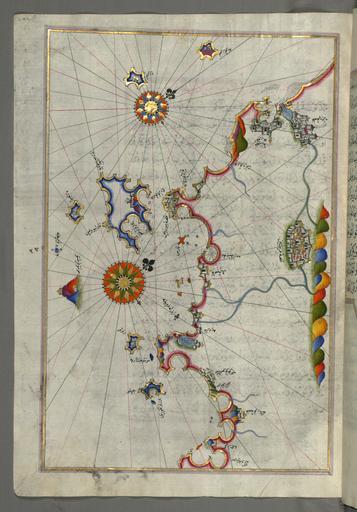 Keywords: Piri Reis - Map of the Western Italian Coast as Far as the City of Pisa - Walters W658244A - Full Page.jpg Piri Reis - Map of the Western Italian Coast as Far as the City of Rome - Walters W658240B - Full Page jpg Piri Reis - Leaf from Book on Navigation - Walters W658245A - Full Page jpg rtl This folio from Walters manuscript W 658 contains a map of the western Italian coast as far as the city of Pisa Pize late 11th century AH/AD 17th century-early 12th century AH/AD 18th century Ottoman ink and pigments on laid European paper cm 34 24 accession number W 658 244A 79847 Ahmad Afandi date and mode of acquisition unknown see folio 4a Ali Afandi date and mode of acquisiton unknown see folio 4a Sayyid Ali Qapudan date and mode of acquisition unknown see folio 1a Sultan Mahmud Khan date and mode of acquistion unknown waqf seal and followed by a bequest statement now erased and the seal of the inspector of wakfs Mustafá Tahir see folio 4a Henry Walters Baltimore date and mode of acquisition unknown Walters Art Museum Henry Walters Acquired by Henry Walters place of origin Turkey Walters Art Museum license 2D Piri Reis Kitab-ı Bahriye Walters MS 658 244A Old maps of Tuscany Old maps of Pisa Old maps of Livorno Piombino in art Old maps of Elba Maps of Isola del Giglio Giannutri island Orbetello Monte Argentario Old maps of Lazio Civitavecchia Old maps of Florence |