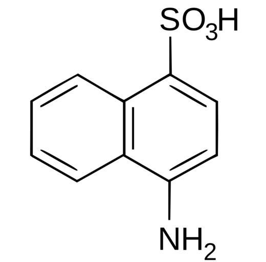 Keywords: Piria acid.svg Skeletal formula of Piria acid synonymous with 4-amino-1-naphthalenesulfonic acid Created using ISIS/Draw and Inkscape Own Krakatit 2008-08-31 Naphthalene sulfonic acids Naphthylamines