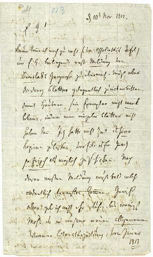 | Keywords: Pismo Jerneja Kopitarja Žigi Zoisu; Dunaj, 10. 11. 1812 (1).jpg 10 novembra 1812 Vaša milost Komaj še dovolj zgodaj se vračam od kosila pri Ossolińskem da lahko Vaši milosti kot prilogo posredujem prvo <u>poročilo</u> o <u>Breislakovi</u> Geognoziji Prositi pa moram da mi te <u>tri liste ob priliki vrnete </u> da Heubner ne bi dobil <u>pomanjkljivega</u> izvoda ker <u>posameznih</u> listov ni mogoče dobiti Zaradi želje da bi jih Vaši milosti poslal tako <u>sveže</u> kot le mogoče nisem imel časa da bi jih dal tukaj prepisati Temu prvemu poročilu bo gotovo kmalu sledila temeljitejša recenzija Prav gotovo pa ne bom dal miru prej dokler vsaj Mohs ne napiše recenzije v naš nov Obči dunajski literarni časopis ki bo <u>začela izhajati</u> januarja <u>1813 </u> den 10<sup>ten</sup> Nov 1812 E G Kaum komme ich noch zu recht von Ossolinski s Tafel um E G beiliegend erste <u>Meldung</u> von <u>Breislak</u> s Geognosie zu übermachen Muß aber die <u>drey Blätter gelegentlich zurück</u> erbitten damit Heubner sein Exemplar nicht <u>mank</u> bekomme indem man <u>einzelne</u> Blätter nicht haben kann Ich hatte nicht Zeit es hier kopiren zu lassen vor Eile es Ew Gnaden so <u>frisch</u> als möglich zu schicken Nach dieser ersten Meldung muß bald welche ordentliche Recension kommen Gewiß aber gebe ich nicht ehe Ruhe bis wenigst Mohs es in unsrer neuen <u>Allgemeinen</u> Wiener Literatur Zeitung vom Jänner <u>1813</u> http //nl ijs si/e-zrc/zois/html/MP49 html 1812-11-10 creator Jernej Kopitar PD-old-100 <gallery> File Pismo Jerneja Kopitarja Žigi Zoisu; Dunaj 10 11 1812 2 jpg part 2 </gallery> 1812 letters Letters by Jernej Kopitar Letters to Sigmund Zois |
