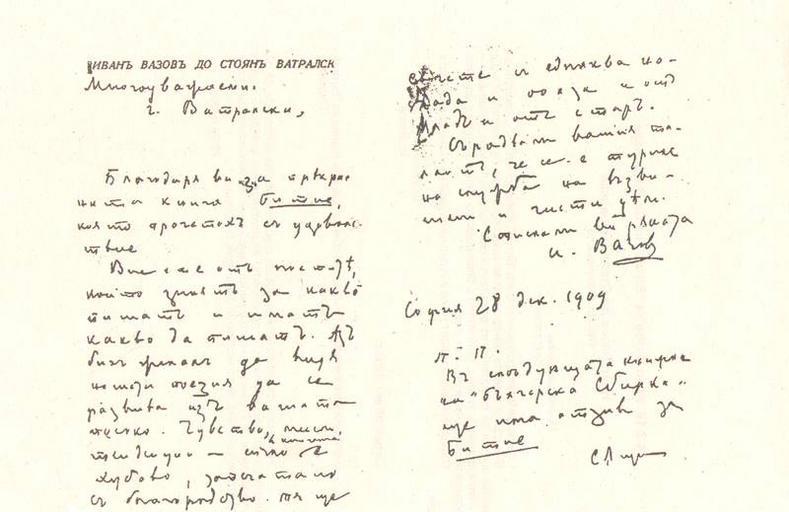 Keywords: Pismo v.jpg en A letter from Ivan Vazov to Stojan Vatralski bg Писмо от Иван Вазов до Стоян Ват алски Иван Вазов Съб ани съчинения т 20 София 1957г Vladimirov st 11 06 2010г Ivan Vazov