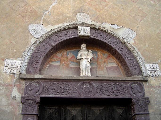 Keywords: Pisogne Chiesa SM Neve Madonna Portale.jpg en Detail of the portal of the church and statue of Virgin Mary Church of Santa Margarita della Neve Pisogne BG Italy Own Laurom 2008-11 Santa Maria della Neve Pisogne