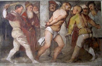 Keywords: Pisogne SM Neve Flagellazione.jpg en Gerolamo di Romano called Romanino Flagellationt of Christ 1533-34 fresco Church of Santa Margarita della Neve Pisogne BG Italy Own Laurom 2008-11 Frescos of the flagellation of Jesus Christ Church of Santa Maria della Neve Pisogne by Romanino Santa Maria della Neve Pisogne |