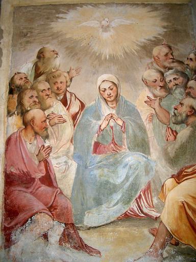 Keywords: Pisogne SM Neve Spirito Santo.jpg en Gerolamo di Romano called Romanino Descent of the Holy Spirit 1533-34 fresco Church of Santa Margarita della Neve Pisogne BG Italy Own Laurom 2008-11 Church of Santa Maria della Neve Pisogne by Romanino Santa Maria della Neve Pisogne