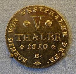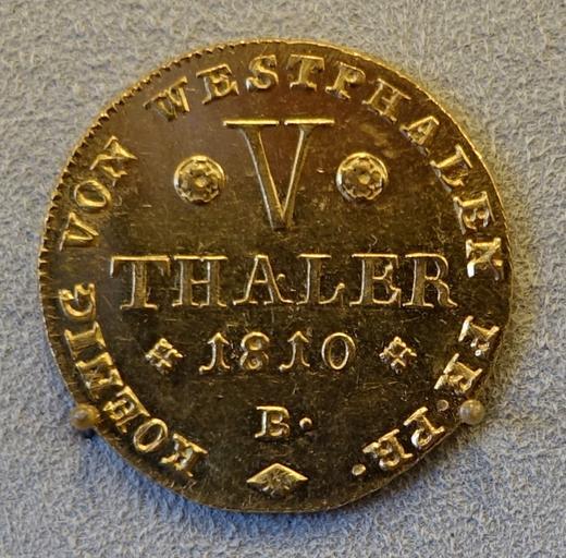Keywords: Pistole, V Thaler, Westfalen Kingdom, 1810 - Bode-Museum - DSC02610.JPG en Exhibit in the Bode-Museum Berlin Germany This work is in the public domain because the artist died more than 100 years ago Photography was permitted in the museum without restriction 2014-11-12 09 10 12 own Daderot other versions PD-old-100 cc-zero Medieval and modern coins in the Bode-Museum Uploaded with UploadWizard |