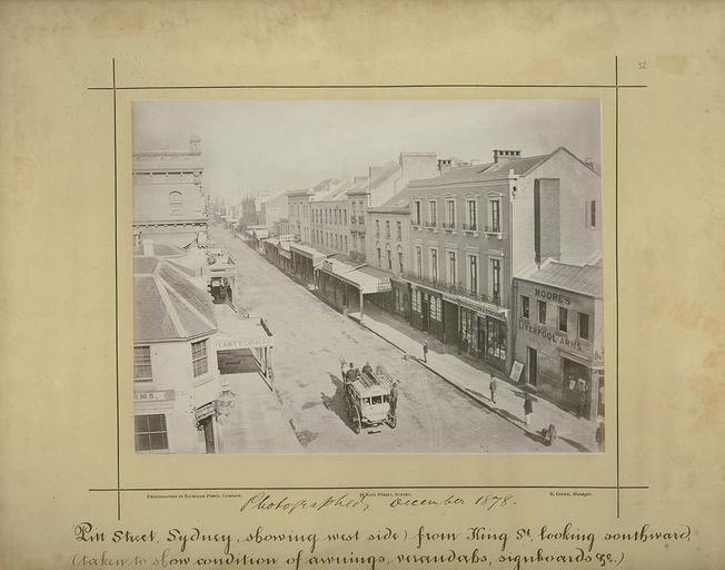 | Keywords: archives state records nsw staterecordsnsw newsouthwales blackandwhite sydney pitt street pittstreet people coach text drawing sketch photo border black and white Pitt Street, Sydney, (showing west side) from King Street - showing condition of awnings, verandahs, signboards Dated: December 1878 Digital ID: 745_a019_a019000011 Rights: www.records.nsw.gov.au/about-us/rights-and-permissions In 1879 The City of Sydney Improvement Act was constituted as a result of the findings of the Sydney City and Suburban Sewage and Health Board regarding the poor condition of buildings and sanitation within the City of Sydney due to a lack of proper legislation and codes of building practice. The City of Sydney Improvement Board was appointed to execute the Act. These photographs, taken by private photographers for the Board, show buildings in need of repair or undergoing alterations, as well as views of streets showing the condition of awnings, signboards and walls of shops, hotels and private residences. We'd love to hear from you if you use our photos. Many other photos in our collection are available to view and browse on our website using Photo Investigator. Pitt Street, Sydney, (showing west side) from King Street - showing condition of awnings, verandahs, signboards Dated: December 1878 Digital ID: 745_a019_a019000011 Rights: www.records.nsw.gov.au/about-us/rights-and-permissions In 1879 The City of Sydney Improvement Act was constituted as a result of the findings of the Sydney City and Suburban Sewage and Health Board regarding the poor condition of buildings and sanitation within the City of Sydney due to a lack of proper legislation and codes of building practice. The City of Sydney Improvement Board was appointed to execute the Act. These photographs, taken by private photographers for the Board, show buildings in need of repair or undergoing alterations, as well as views of streets showing the condition of awnings, signboards and walls of shops, hotels and private residences. We'd love to hear from you if you use our photos. Many other photos in our collection are available to view and browse on our website using Photo Investigator. |