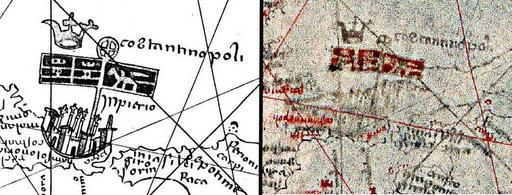 | Keywords: Pizigani 1367 Constantinople.jpg en The conquerors flags over Constantinople point to a portolan of around 1210 First discovered by Fischer in 1881 Left Jomard right photography enlargement PD-old-100 Pizigano and Jomard 1367 1849 Credit line http //en wikipedia org/wiki/User 3APortolanero Wikimedia Commons CC-BY-3 0 1300s maps Maps in Italian |